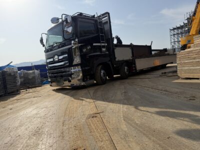 当日は平台トラックで現場へ入り、
