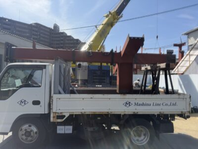 先日、河内長野市内の現場にて2トン車による鉄骨搬入を行いました。