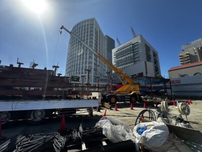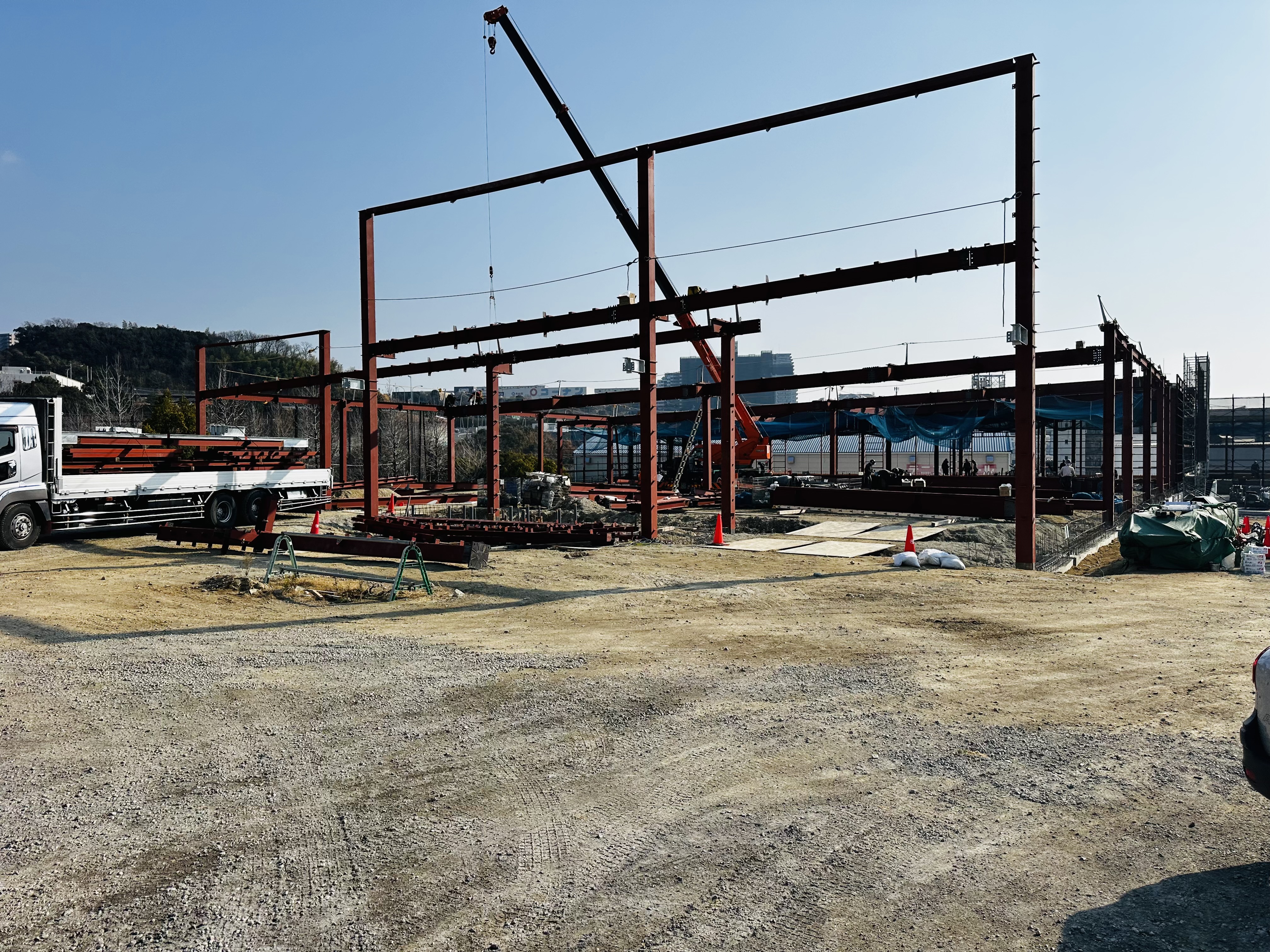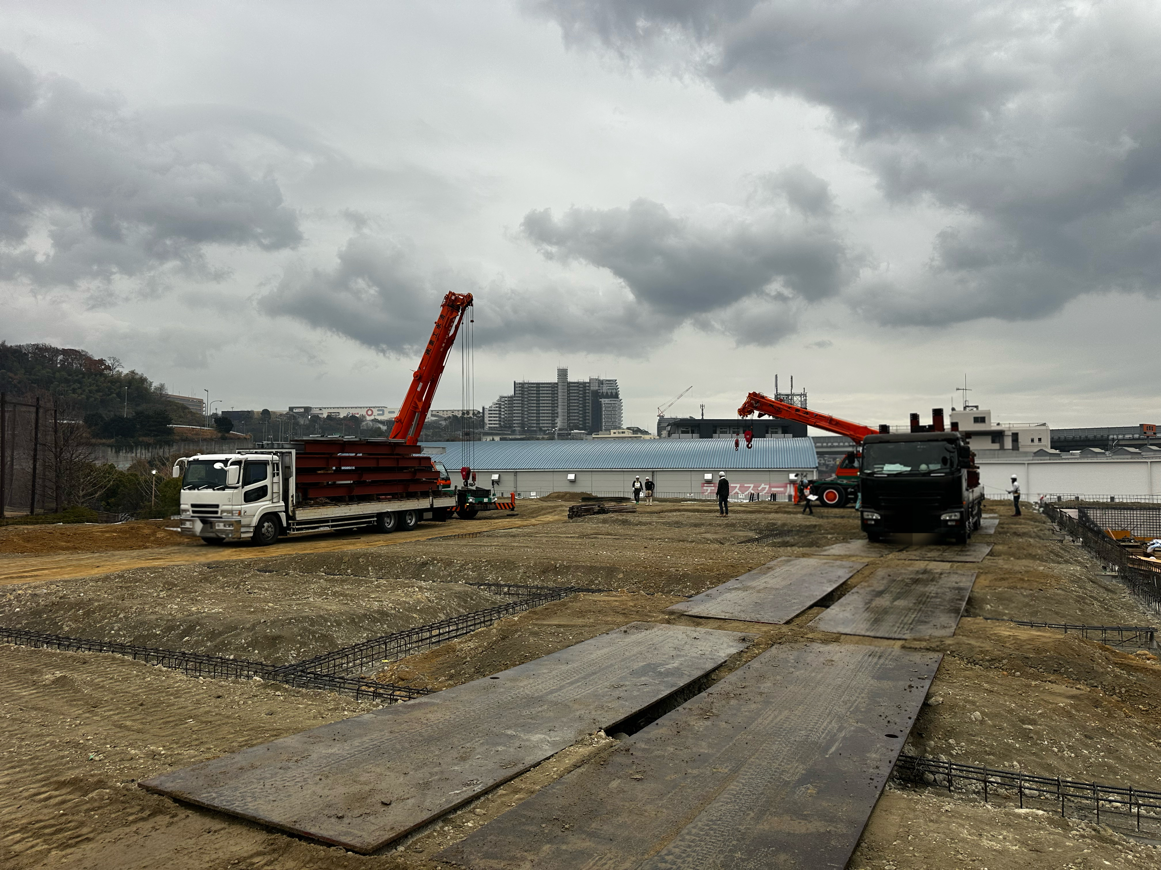 こんにちは、MashinaLineです😊今回は【中之島小中一貫校】の新設工事現場へ、鉄骨材の搬入を行いました!